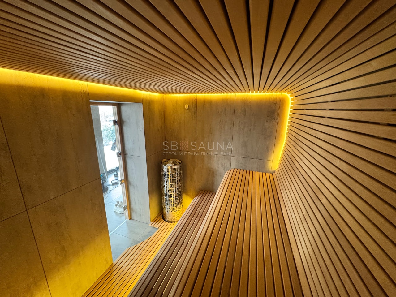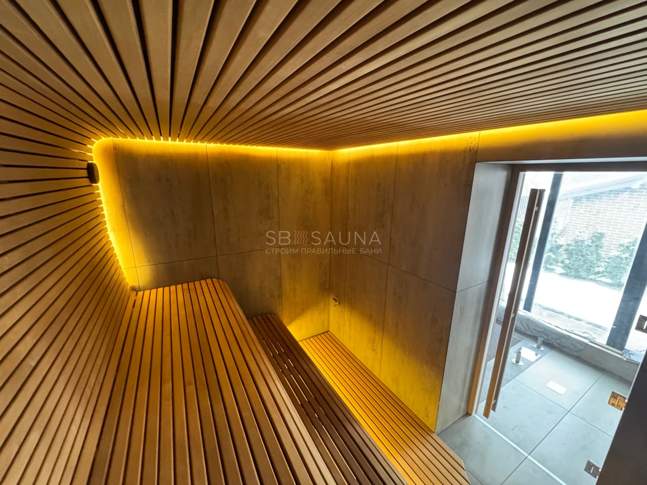 Сауна в стиле минимализм из белорусской ольхи